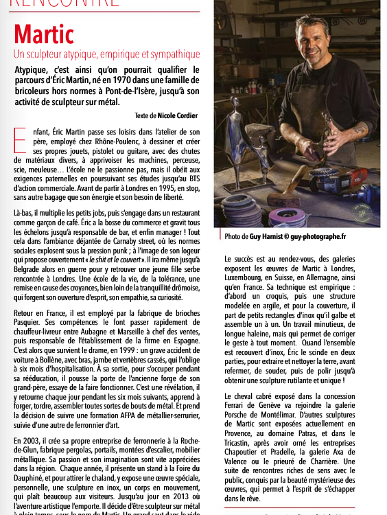 Une photographie de Martic, sculpteur sur inox, mise à l’honneur dans le magazine REGARD J’ai le plaisir d’annoncer la diffusion d’une de mes photographies consacrée à […]